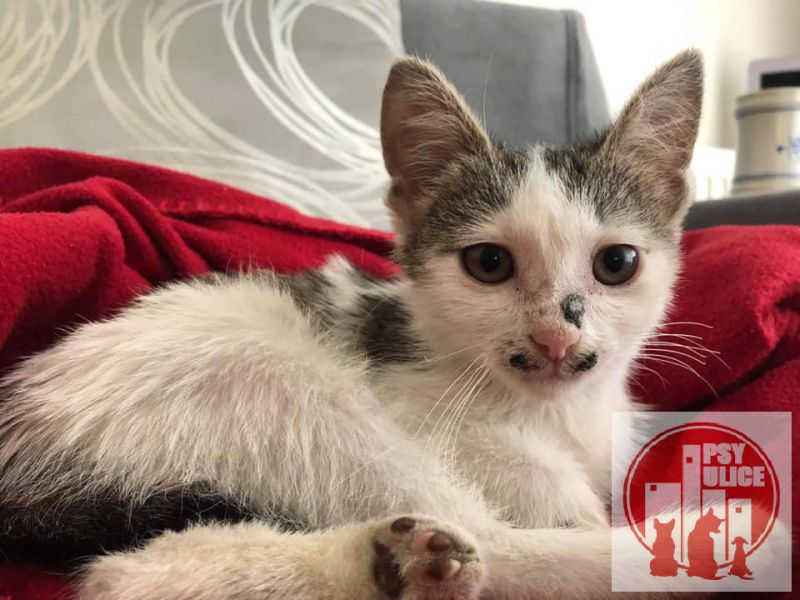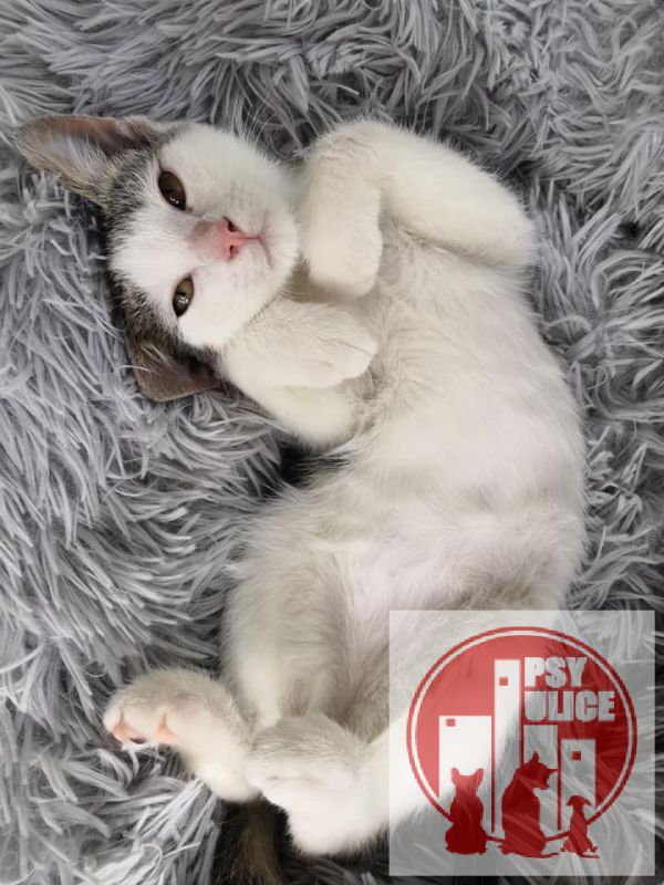 Mini sa našla v noci na ulici a dobrá duša ju zobrala do bezpečia. Zvieratká asi vedia, kde hľadať pomoc. Mini má popálený noštek a spálené, stočené fúziky. Niekto sa očivdine bavil. Má za sebou už vyšetrenie, mala ušný svrab. Inak je to veľmi milé kĺbko, plné lásky. Rada papá a je naučená na wc. Je to proste šikulka. Tetušky Danka a Zuzka ju okúpali a poriadne vymojkali.