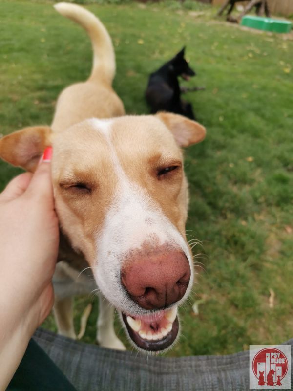 MEDA je veľmi milá a prítulná sučka, ktorá má veľmi rada hladkanie. Zahrá sa aj so psíkmi, ale najviac miluje pozornosť ľudí, takže môže byť kľudne aj jedináčik. MEDA začína poslúchať na zavolanie, aj na meno, má 100% hygienické návyky. Treba však vziať do úvahy jej minulosť a tréning začať od základných povelov - na vodítku chodiť pekne ešte nevie. Rada sa učí a bude na Vás visieť celou svojou pozornosťou. Nenechajte sa oklamať fotografiami, je veľkosti pod kolená a hneď ako Vás spozná, tak Vás rýchlo opusinkuje.