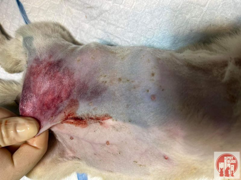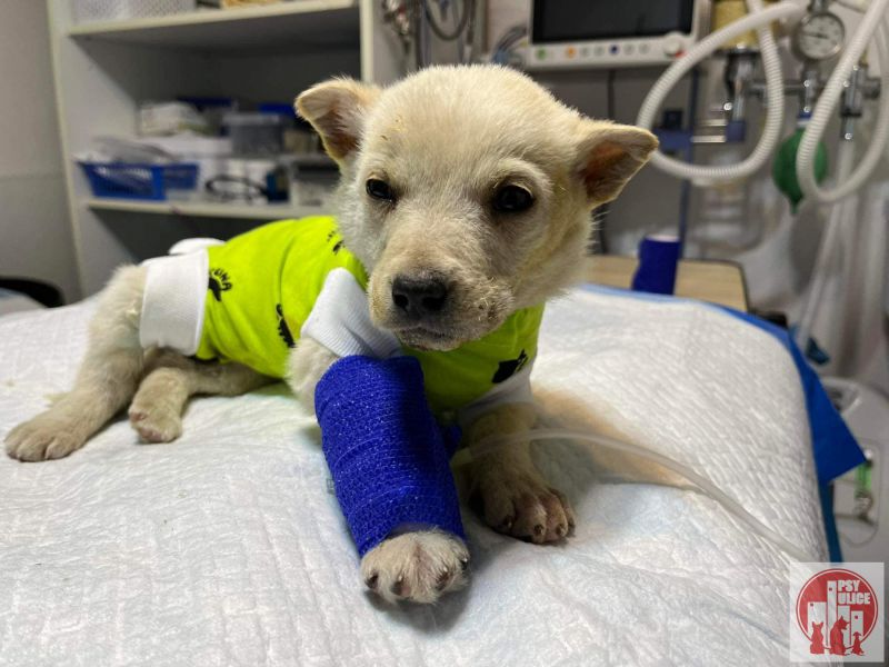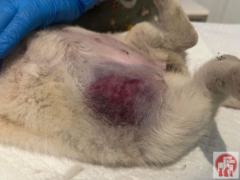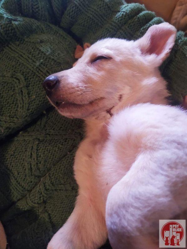 Najprv sa narodila v ”PEKLE” v osade… potom keď sa konečne zachráni tak zistíme, že ju nejaký haj…l tak dokopal, že musela byť operovaná, pretože jej črevá čo mali byť v brušku boli mimo brušnej dutiny. Keď už bola po operácií a verte, že bojovala ako “LEV”. Bojovala zase… chytila “PARVO”. Pokračujem ďalej… jej telo bolo popálené a jej krk bol samučký hnis, ktorý strašne páchol. Natieralo sa to a dostala a antibiotiká.