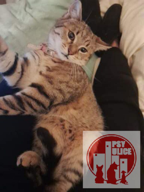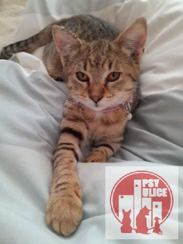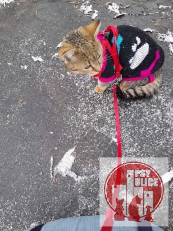 Lujzu som objavila v jednu septembrovú noc ako 12 týždňové mačiatko. Svedomie mi nedovolilo ju nechať napospas ulici pred blížiacou zimou. Tú by neprežila. Chúlila sa v rohu na schodoch pri mestskom parku. Aj keď som vedela že jej nemôžem poskytnúť stáli domov, nezaváhala som ani na chvíľu a bola v mojich rukách. Nebránila sa, sama mi vkĺzla do rúk, cítila že som pre ňu bezpečie. Bol na ňu žalostný pohľad. Bola v zúboženom stave zabľšená, uši s mačacím svrabom, oči zapálené, vychudnutá na kožu a kosť. Pohľad na ňu bol pre odporcov zvierat odpudzujúci. Okolo nej denne prešli určite tisíce ľudí, nikoho nezaujímala. Takých mačičiek sa v uliciach mesta túla veľké množstvo. Prvé dni u mňa sedela pri miske kŕmila sa s krátkymi prestávkami. Ulica a hlad zanechali na jej krátkom živote stopy nevedela sa nasýtiť. Po niekoľkých týždňoch sa zabývala a zdravotný stav sa začal zlepšovať. Vyrástla z nej inteligentná mačacia krásavica so 100% hygienickými návykmi. Aby nestratila kontakt s ľuďmi a prírodou chodí na krátke prechádzky zaistená popruhami pred útekom. Rada sa nosí v taške. Je veľmi prítulná, hravá, vie odpovedať na pozdrav.