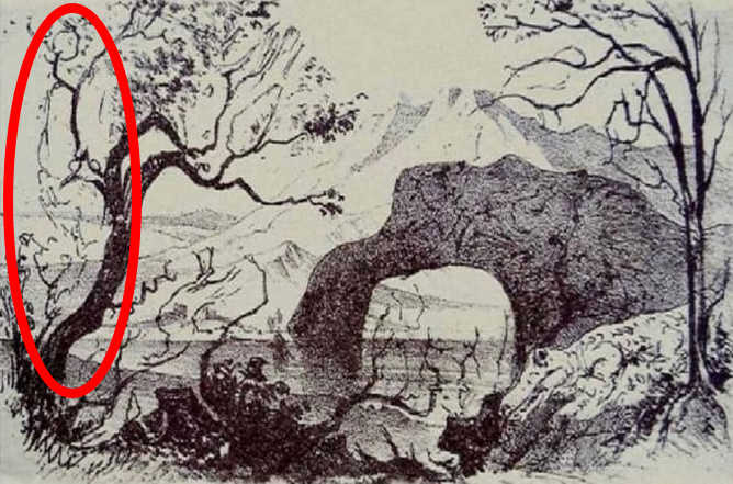 Skrytého muža možno vidieť ako obrys opretý o strom na ľavej strane obrázka. Vyzerá to, akoby fajčil fajku.