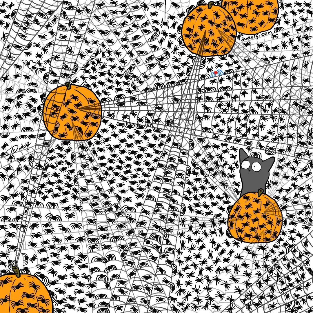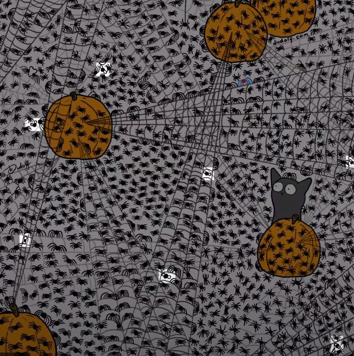 Skúste vyriešiť hádanku, ktorá sa stala na internete neuveriteľne populárnou – na obrázku s tekvicami a množstvom pavúkov musíte rýchlo nájsť muchy.