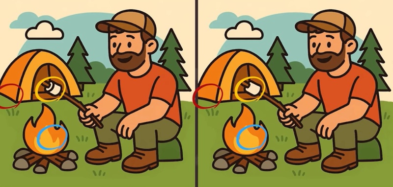 Tentoraz sa budete musieť pozrieť na obrázky muža, ktorý si pri ohni opeká marshmallow. Na prvý pohľad vyzerajú úplne rovnako, ale umelec ukryl tri malé rozdiely. Na ich nájdenie máte len 51 sekúnd!