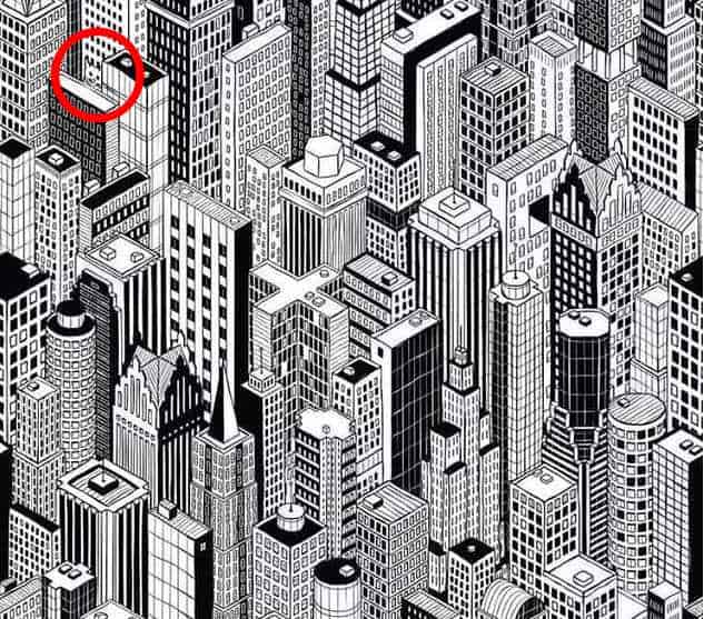 Na prvý pohľad sa môže zdať, že na obrázku sú len mestské výškové budovy, ale nerobte unáhlené závery. Prvý dojem môže byť klamlivý.