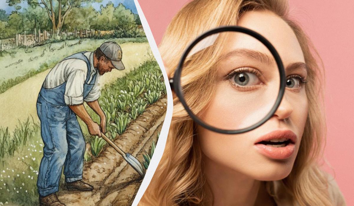 Hneď uvidíte pole pri malebnej dedinke a troch mužov, ktorí pracujú pod holým nebom. Musíte určiť, čo je na tomto obrázku nesprávne.