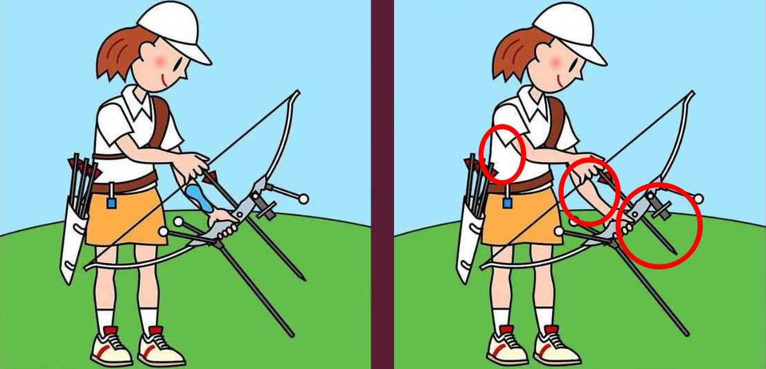 Iba ľudia s „orlím zrakom“ dokážu za veľmi krátky čas – len 16 sekúnd – postrehnúť tri rozdiely medzi obrázkami lukostrelkyne. Nie každý to bude schopný urobiť tak rýchlo.