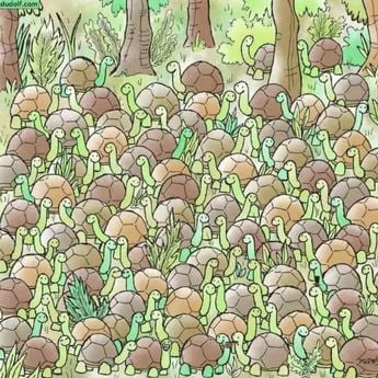 Hada ukrytého medzi usmievavými korytnačkami dokážu rozpoznať len ľudia s najvyššou úrovňou inteligencie.