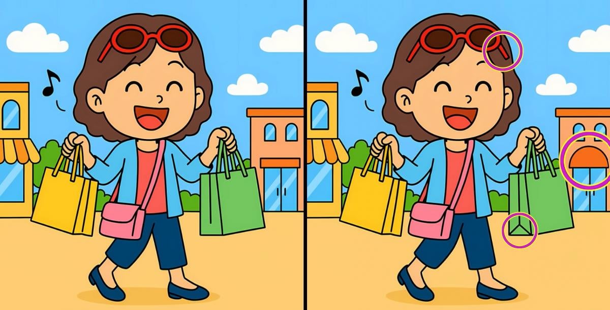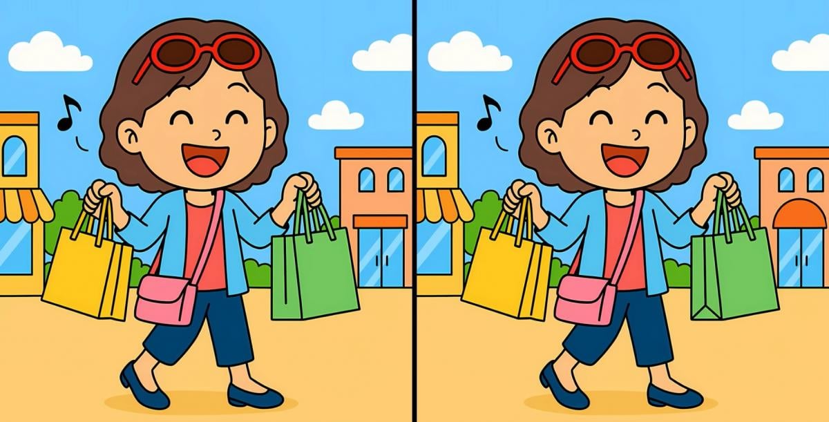 Ste pripravení otestovať svoju pozornosť? Tu sú dva obrázky dievčaťa, ktoré nakupuje. Vyzerajú rovnako, ale je to len trik oka – sú medzi nimi skryté tri rozdiely.