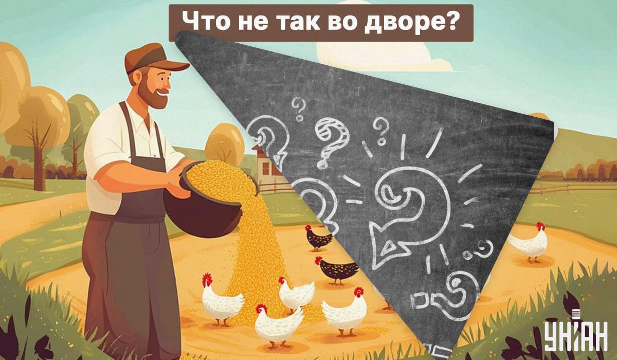 Na snímke útulný hospodársky dvor so sliepkami, ktoré majiteľ kŕmi vybraným zrnom. Obrázok vyzerá idylicky, ale má jednu veľmi závažnú chybu. Rozdeľte obrázok na časti a použite svoje dobré myslenie, mimoriadnu predstavivosť a zdravý rozum, aby ste našli odpoveď. A nezabudnite, že na to nemáte viac ako 5 sekúnd.