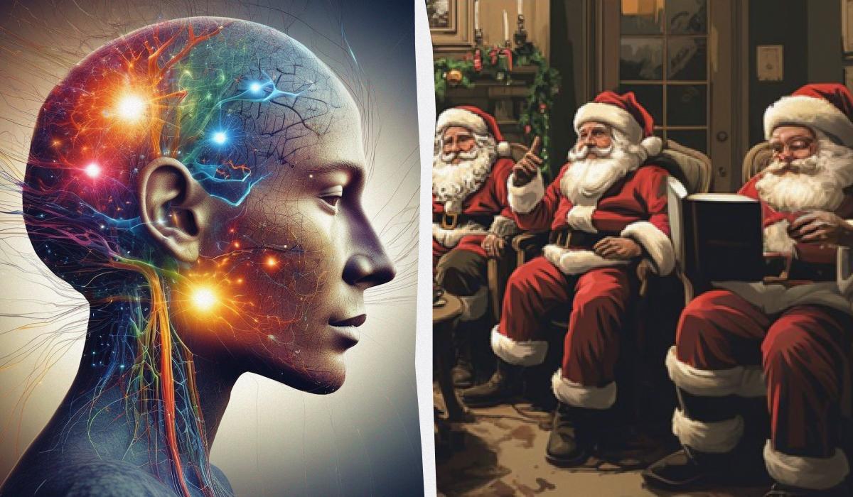 Správna odpoveď je táto – na ľavej strane sedela žena oblečená ako otec Frost. Ženu bolo možné spoznať podľa vrkoča a nalakovaných nechtov.