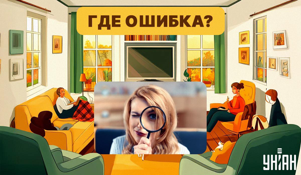 Nižšie uvidíte obrázok útulnej obývačky, v ktorej sedia dvaja ľudia a okolo nich pobehuje psík. Na tomto obrázku však niečo nie je v poriadku a vašou úlohou je určiť, čo to je.