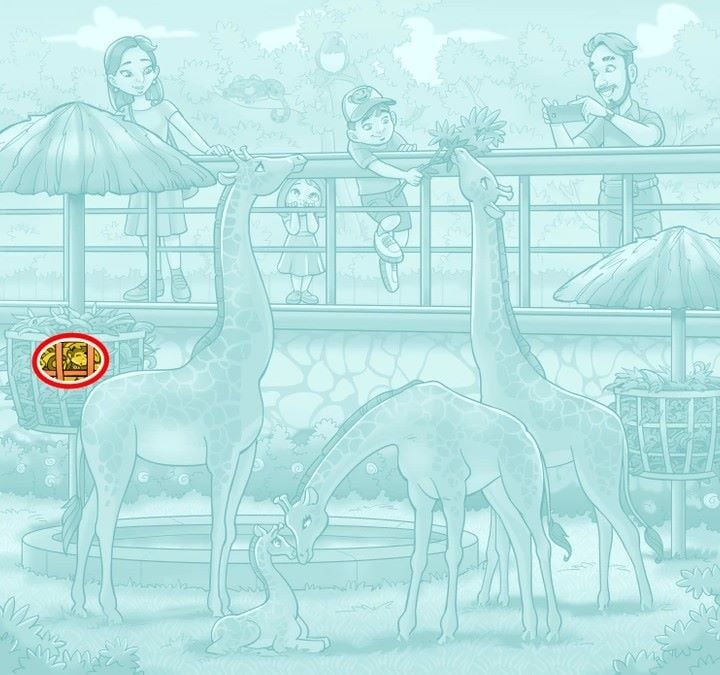 Ako hovorí JagranJosh, ilúzia zobrazuje zoologickú záhradu. Muž kliká na obrázky žiráf. Žena a deti sú ohromené, keď vidia zvieratá. Chlapec kŕmi žirafu rastlinami. Niekde na obrázku sa šikovne skrýva aj opica. Pokúste sa opicu čo najskôr nájsť, pretože na splnenie tejto úlohy máte len 9 sekúnd.