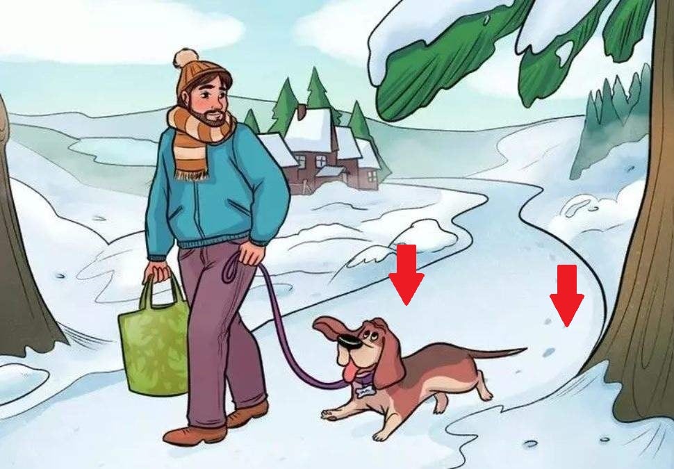 Chyba je v tom, že pes zanecháva stopy v snehu, ale jeho majiteľ nie.